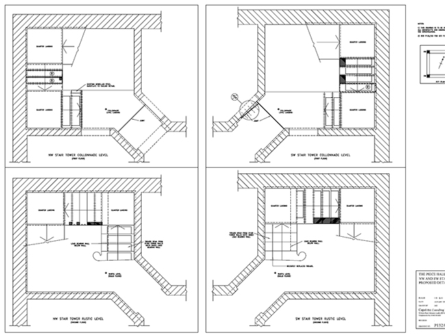A scheme of assessment and repair work, incorporating the six Georgian stone cantilevered stair cases. Working with the project architect, these staircases were assessed.