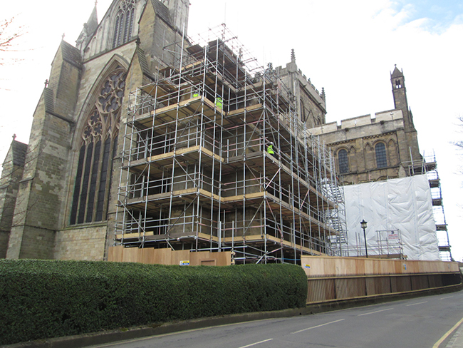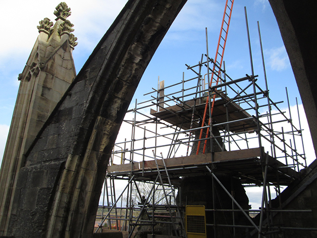 Work has included undertaking a detailed assessment of the condition of the structure, advising on strengthening repair proposals, advising on the construction of the scaffolding. This included assessing the strength of the transept roof onto which it bears. And finally, ongoing advice and support over the course of the construction contract during 2015.