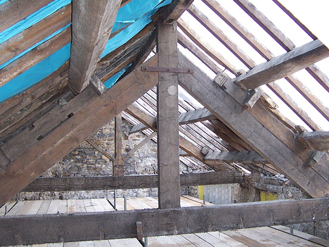 Introduction of a new suspended floor using traditional details, but able to cope with museum floor loading requirements, and the assessment and repair of decayed trusses. Also reduction in ground floor level to create better head heights and accommodate a new lift pit meant that sections of the walls needed to be underpinned.......all whilst respecting, repairing and retaining the outer 16C envelope.