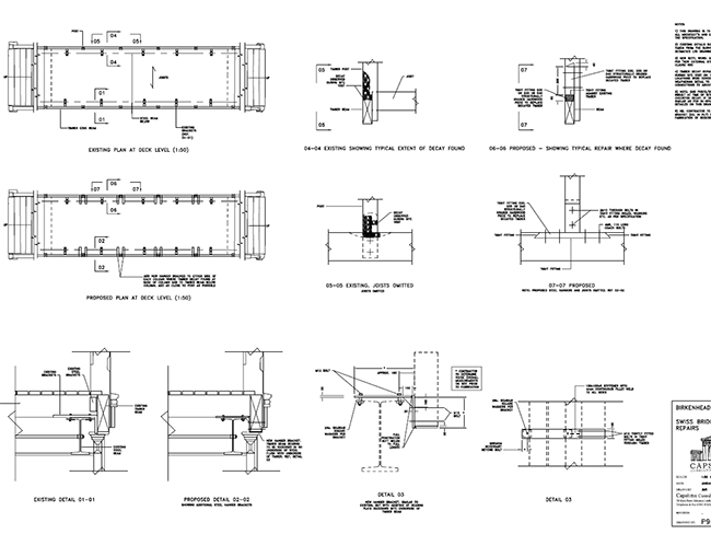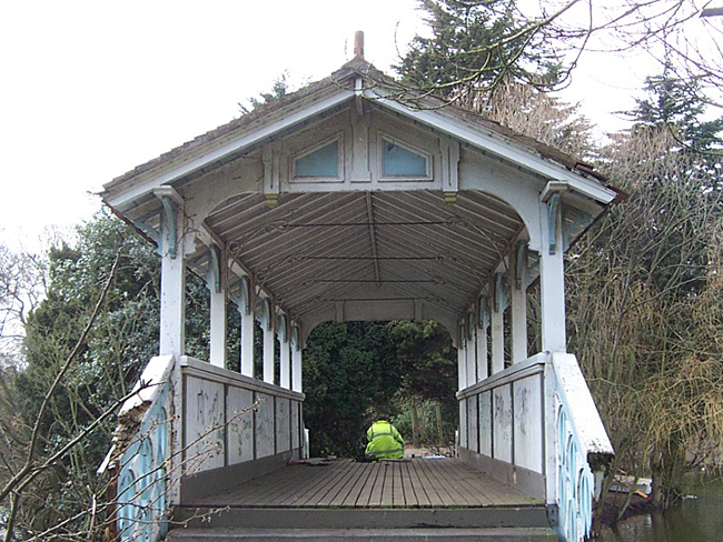 Full refurbishment of the Swiss Bridge. This involved draining down the lake for safe access, and fully 'cocooning' the bridge and scaffold within a 'vandal proof' box. Once I was able to open up the structure, disappointingly I found little remained of Paxton's fabric. Original timber trusses had been replaced by hidden steel beams. These past interventions themselves were in a poor state. I found many sections of decayed timber needed to be replaced, and that the heavily scoured abutments needed to be underpinned with a reinforced concrete pinning and anti scour skirt solution.