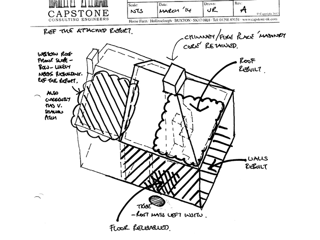 A relatively small project for Capstone, but typical of the many smaller 'site visit and report' projects we do. In summary I was asked to determine what, if anything, of the fabric of this seriously distressed historic building could be saved, after a 'non historic building friendly' structural engineer had already recommended full demolition.